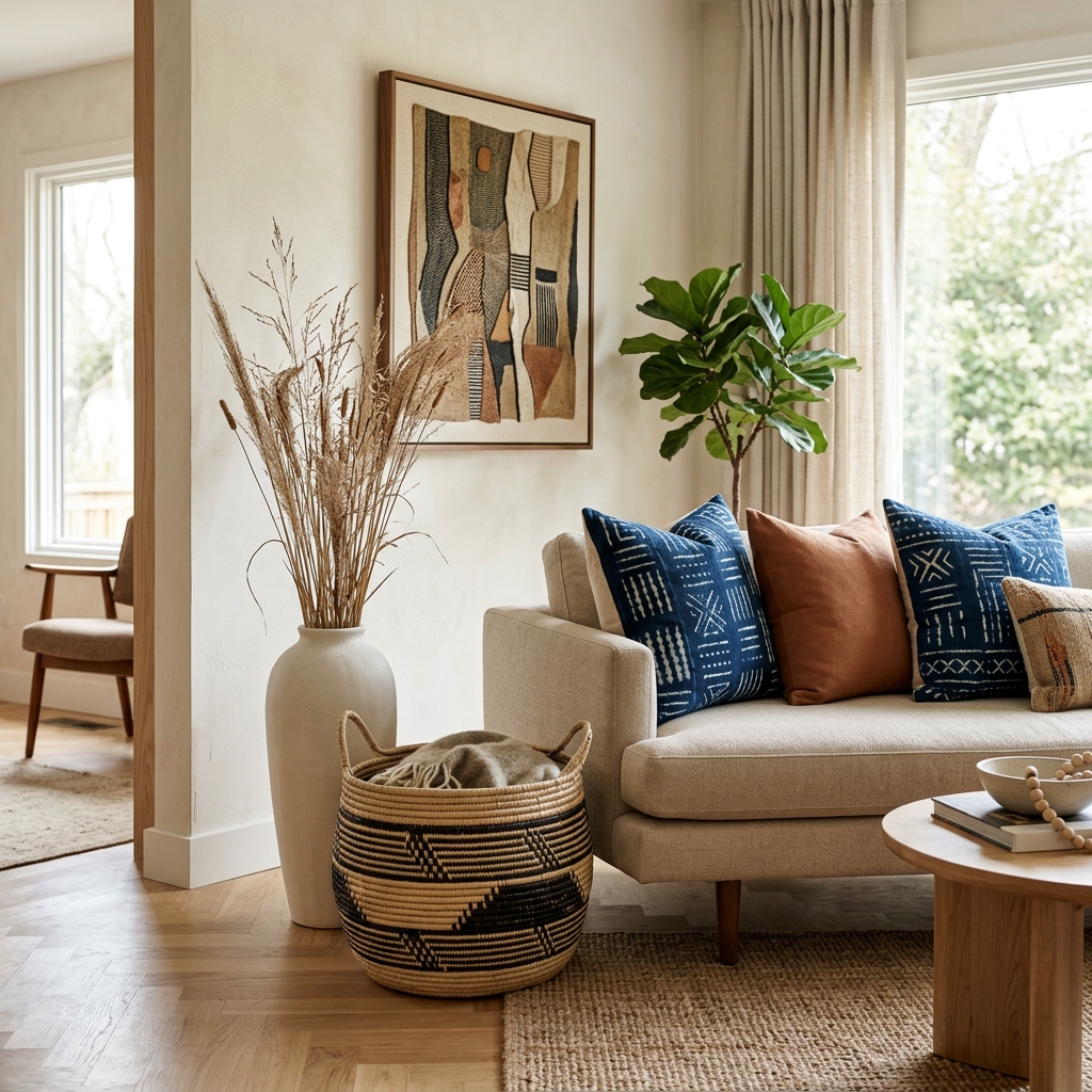 Contemporary & African. A curated fusion of modern silhouettes and traditional African textures for the soulful home.