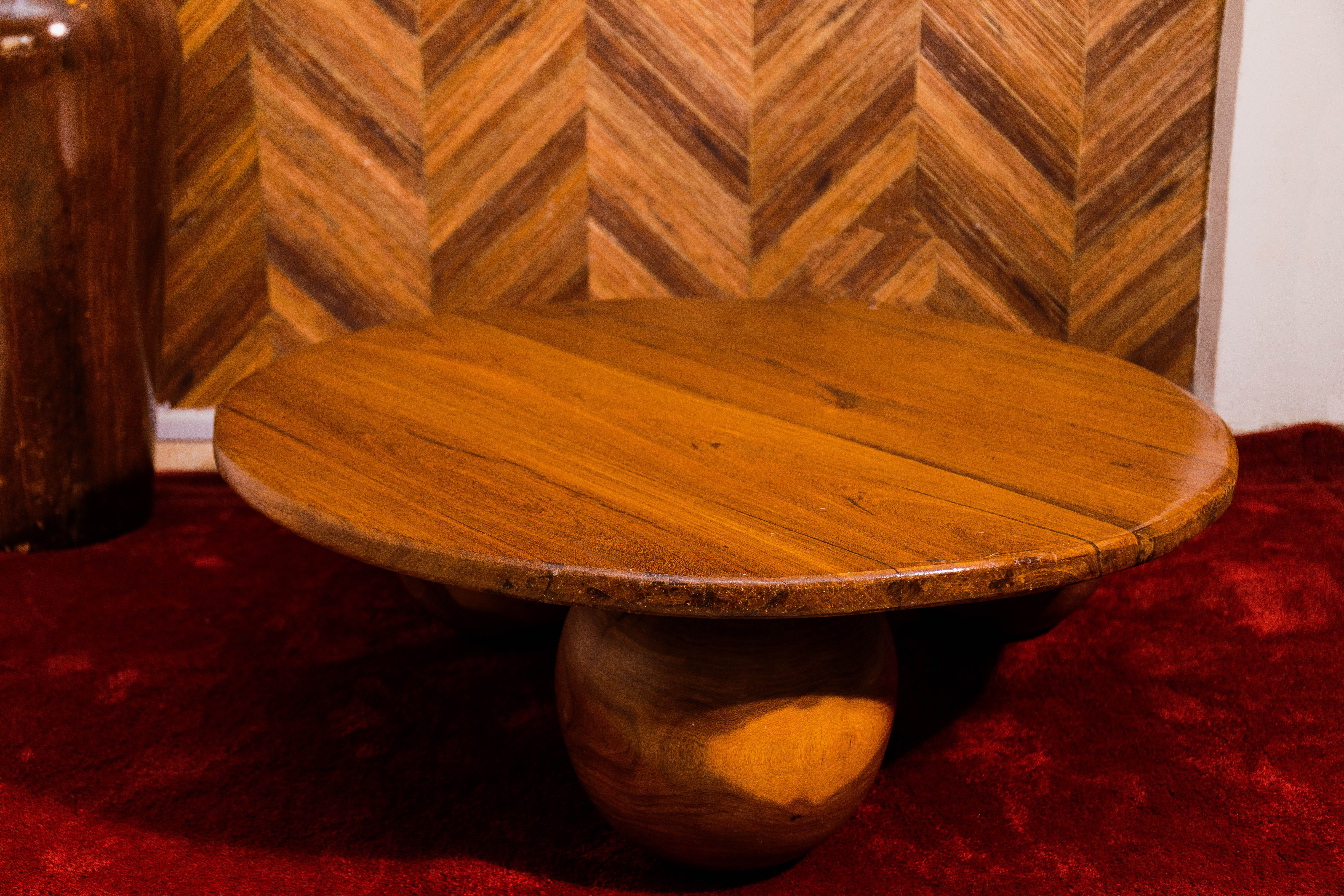 The round top and spherical base is a dense hardwood we delight in retailing. A bold circumference table for a large sitting draws in togetherness and community.